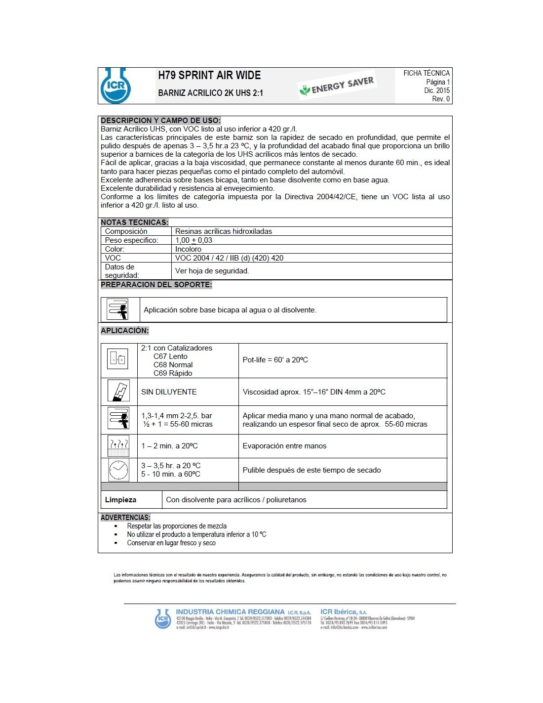 KIT BARNIZ H79 UHS SECADO RAPIDO AIR-WIDE 5L VOC 420. 2:1:0%  + Catalizador  2,5 L.