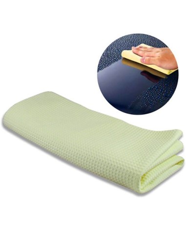 Bayeta de secado profesional con estructura hexagonal. Absorbe de una sola pasada hasta 3 veces más líquido que las bayetas convencionales de PVA. Su estructura hexagonal en forma de pirámide, hace que retenga la humedad y deje un acabado final brillante. Sus fibras ultrasuaves permiten un uso seguro en vehículos repintados sin que se produzcan micro-rayaduras.